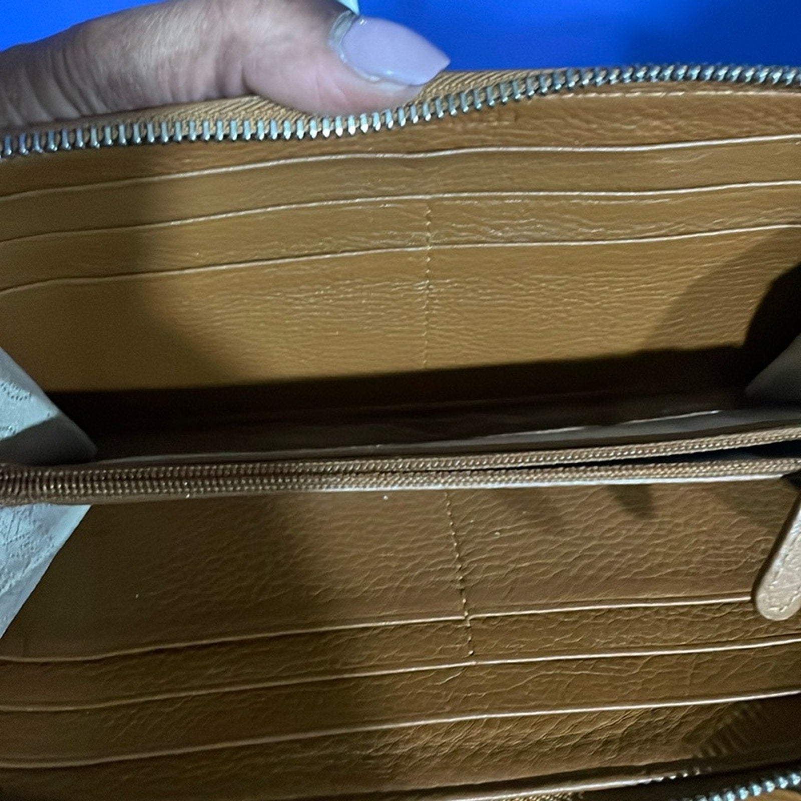 Michael Kors Authentic large zip up leather Wallet In Cognac luggage color. Michael Kors Authentic large zip up leather Wallet In Cognac luggage color. Measurements are 9”L X 5”W X 1”D
