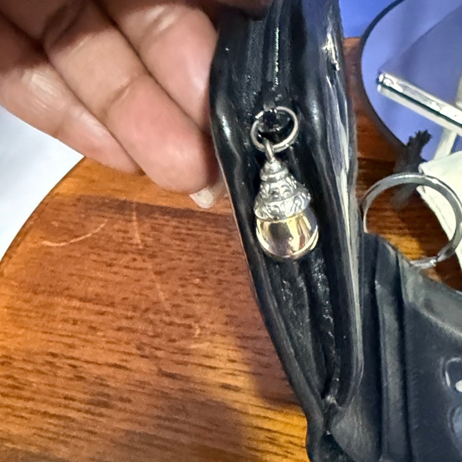 Full length cash section behind with a large swivel key fob.