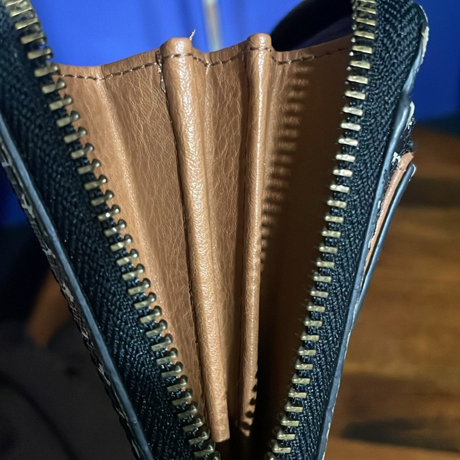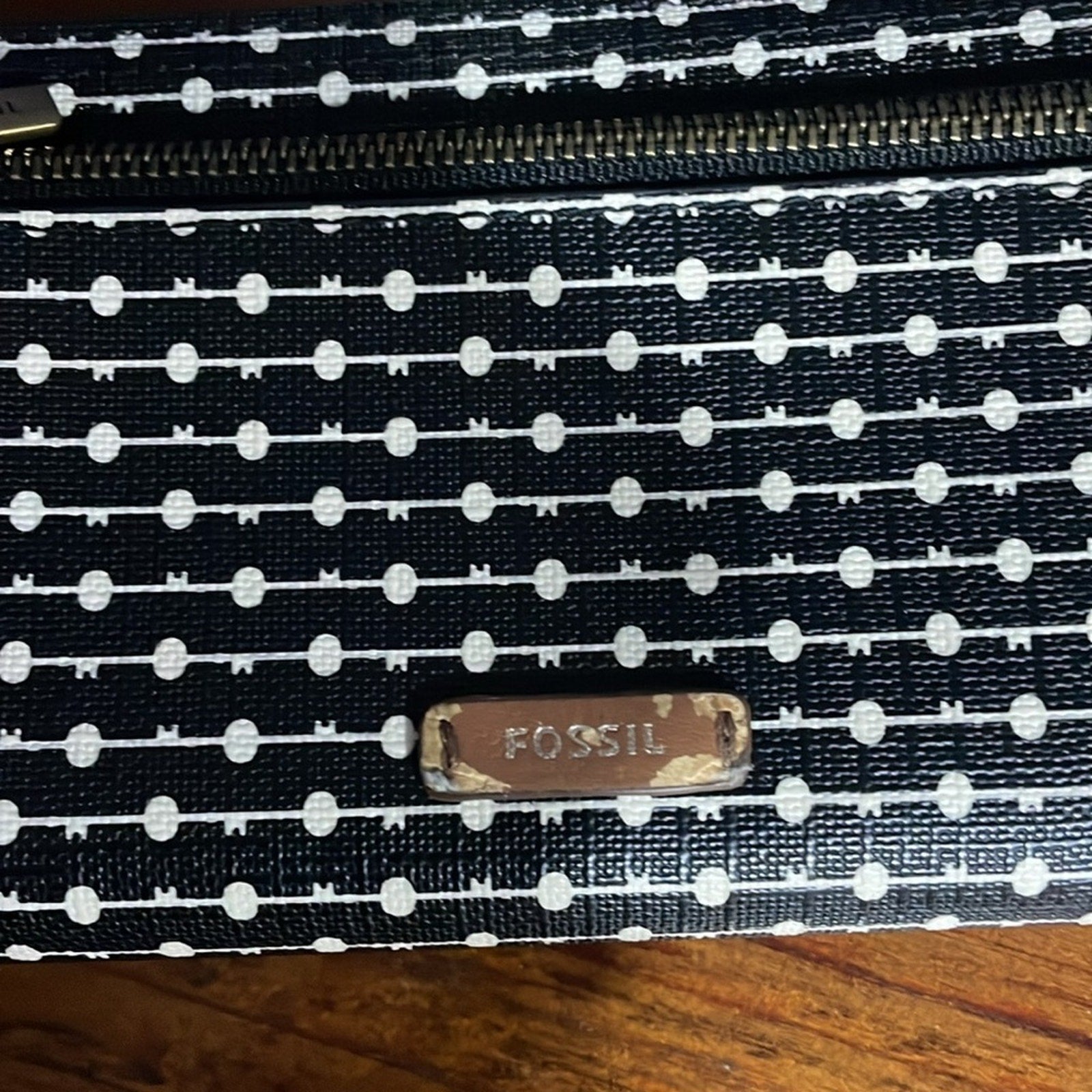 FOSSIL Logan RFID Zip Around Clutch Black Stripe Wallet. Slight signs of wear on label