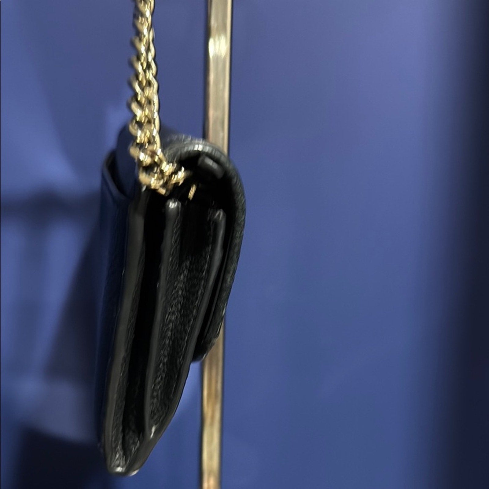 Elegant black leather shoulder bag with a stylish chain strap. Perfect for any occasion.