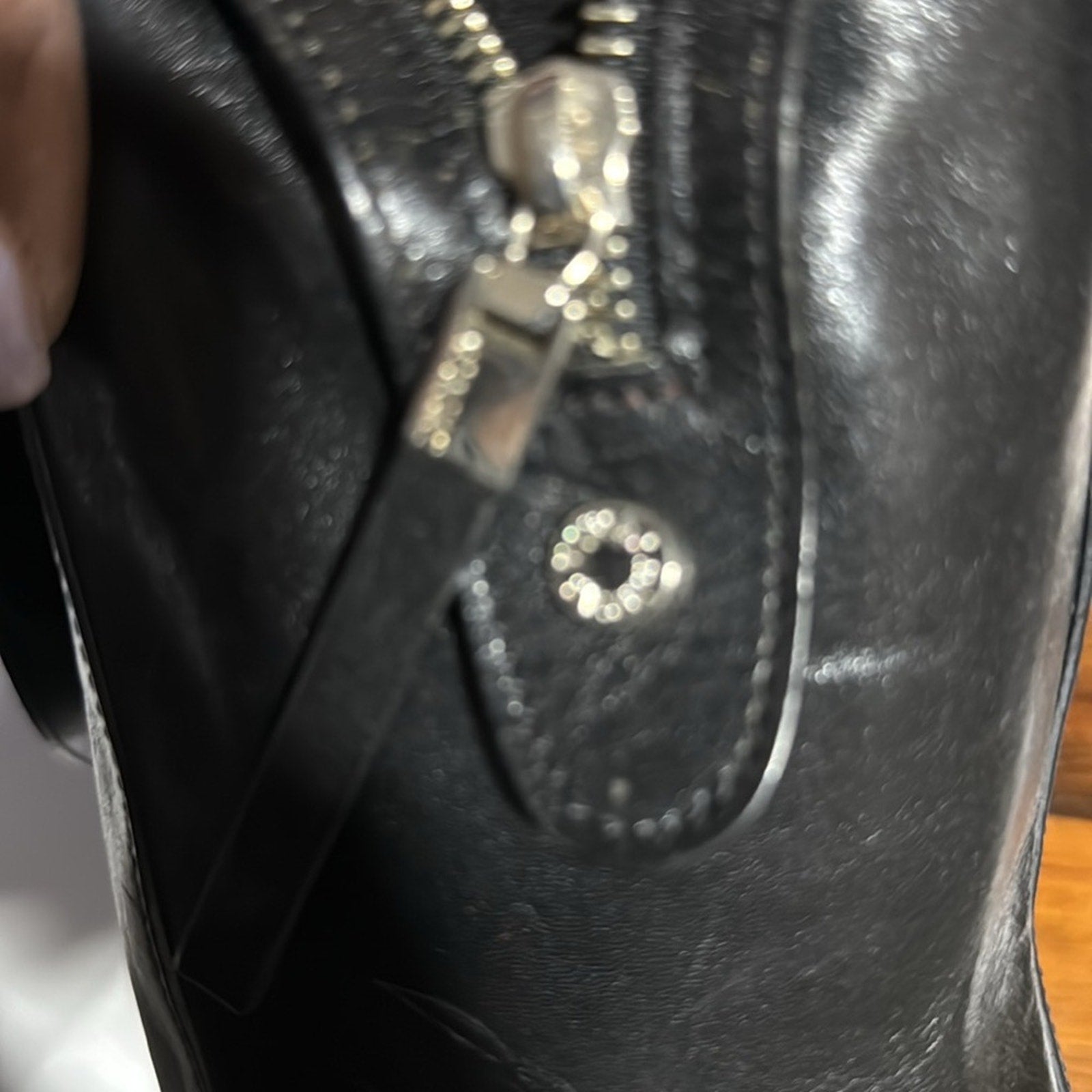 With a full Zipper for closure and a zipper compartment On the inside of the purse In a good vintage condition