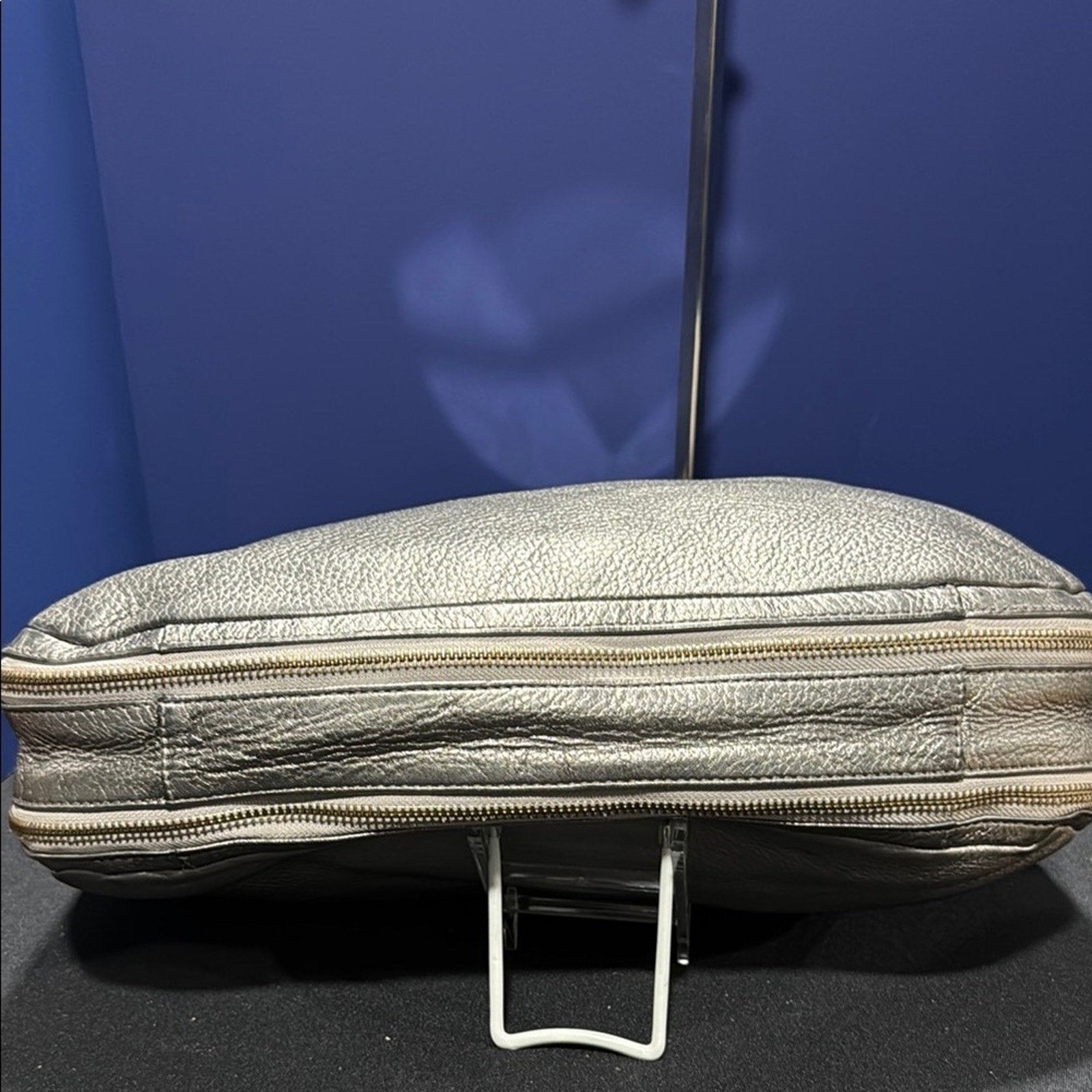Tory Burch Metallic Gray Pebbled Leather Hobo Shoulder Bag